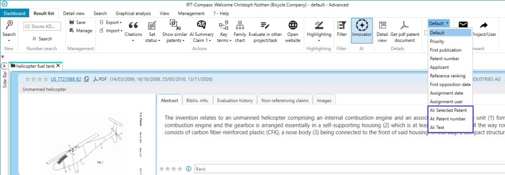 Die Ergebnisliste wird anhand des ausgewählten Patents sortiert.